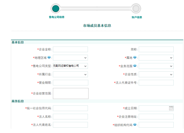 5.目前,售電公司需注冊到第五步“填寫注冊帳號信息”保存賬號后才能保存之前填寫的信息。建議售電公司15分鐘內(nèi)操作至第五步,保存賬號(不要點擊“完成”進(jìn)行提交審批),再用賬號登錄交易平臺補(bǔ)充完善相關(guān)信息及附件,避免因突然斷電或斷網(wǎng)等原因造成之前填寫的信息沒有保存。