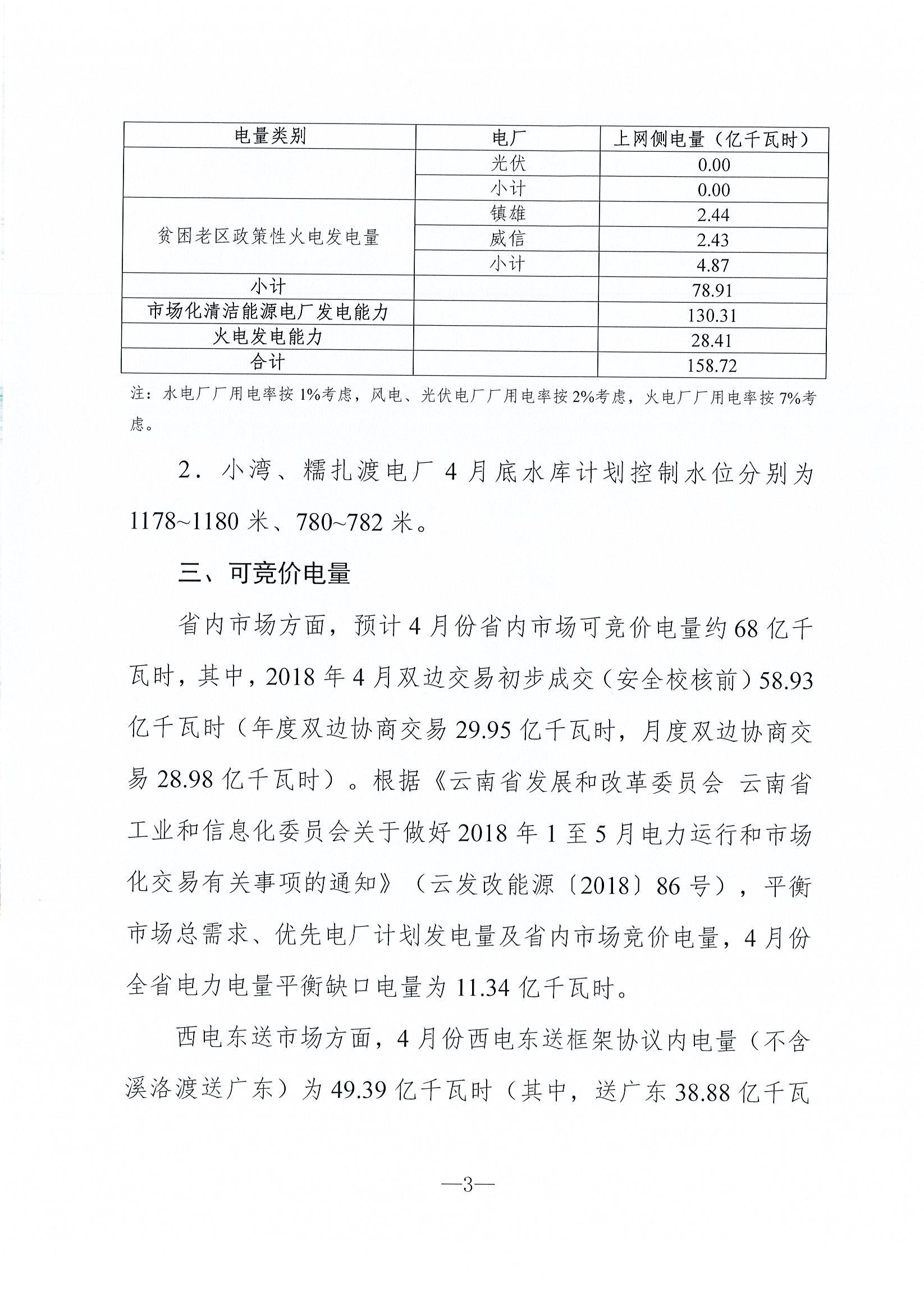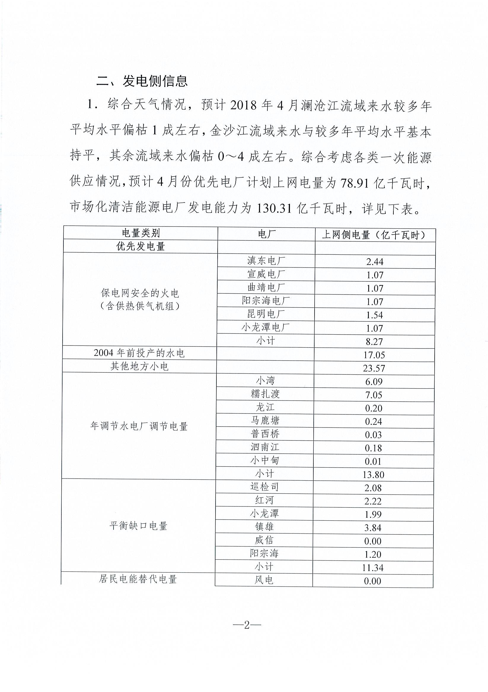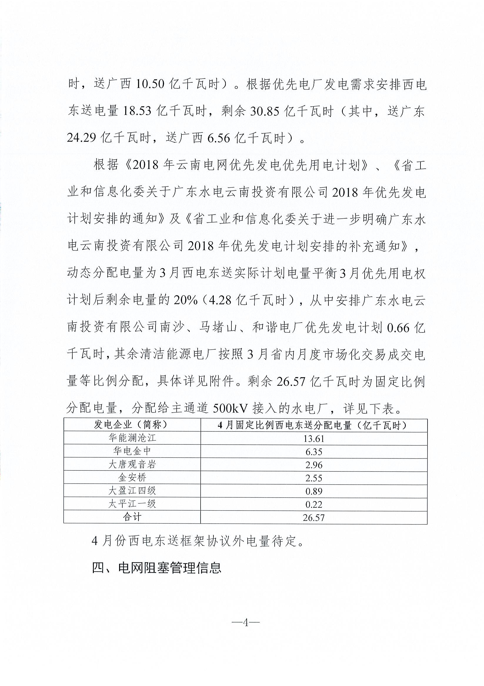 云南2018年4月電力市場(chǎng)化交易信息披露