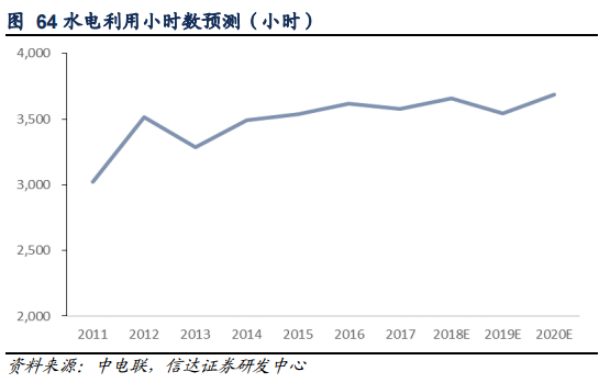 2018 年前四個(gè)月水電利用小時(shí)數(shù)同比下降 2.9%,由于 2018 年下半年新增裝機(jī)量上升幅度不大,發(fā)電量將推動(dòng)利用小時(shí)數(shù)提升,我們預(yù)計(jì) 2018 年利用小時(shí)數(shù)為 3656.49 小時(shí),同比上升 1.7%。預(yù)計(jì) 2020 年水電平均利用小時(shí)數(shù)將達(dá)到 3688.66 小時(shí)。