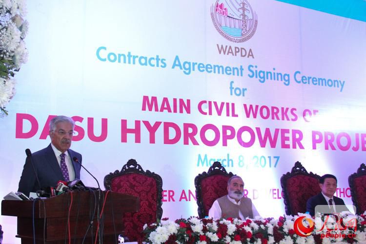 中國(guó)葛洲壩集團(tuán)股份有限公司(簡(jiǎn)稱(chēng)葛洲壩集團(tuán))8日在巴基斯坦首都伊斯蘭堡同巴水電開(kāi)發(fā)署舉行了達(dá)蘇水電站主體工程建設(shè)協(xié)議簽約儀式。巴基斯坦國(guó)防部長(zhǎng)兼水資源和電力部長(zhǎng)赫瓦賈-阿西夫、葛洲壩集團(tuán)副總經(jīng)理鄧銀