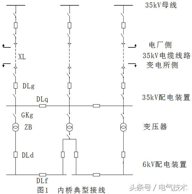 內(nèi)橋接線具有高壓斷路器數(shù)量少,變電所占地面積小等優(yōu)點,但同時也存在變壓器的切除和投入較復(fù)雜,線路斷路器檢修時需較長時間中斷線路供電等缺點。